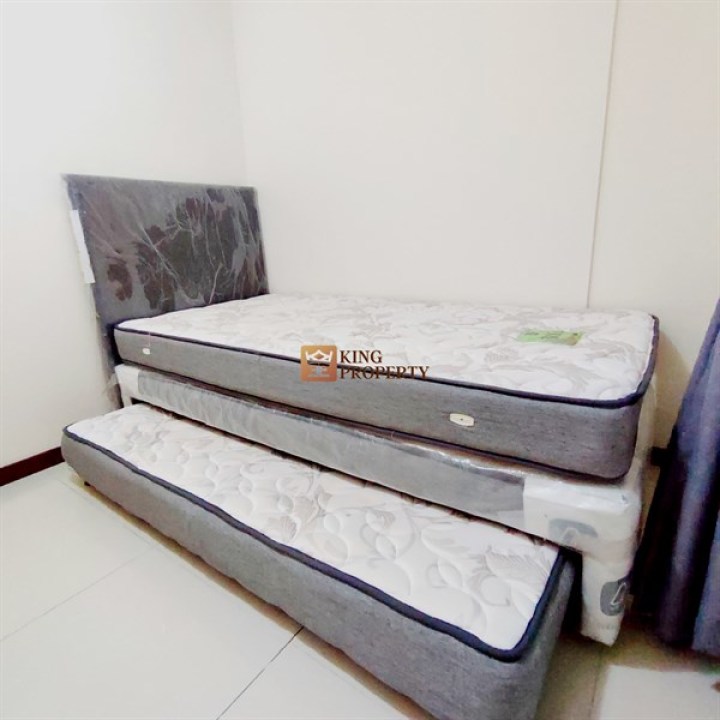 Sudah Include AC, kitchen set, meja makan, kulkas, sofa, lemari baju, tempat tidur queen size dan Springbed Single, meja rias, meja TV, TV LCD (total 64 channel lokal dan internasional),water heater.