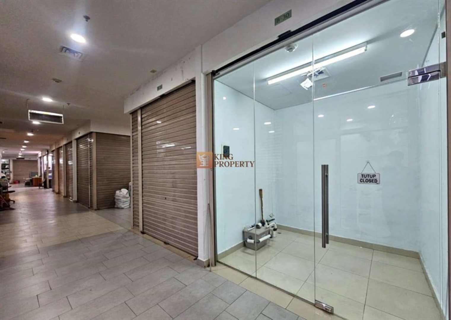 Kios dalam kondisi rapi dengan pintu kaca & AC Central terpasang. Sangat cocok untuk berbagai kebutuhan: kantor pribadi, usaha retail, online shop, gudang stok, hingga domisili PT.